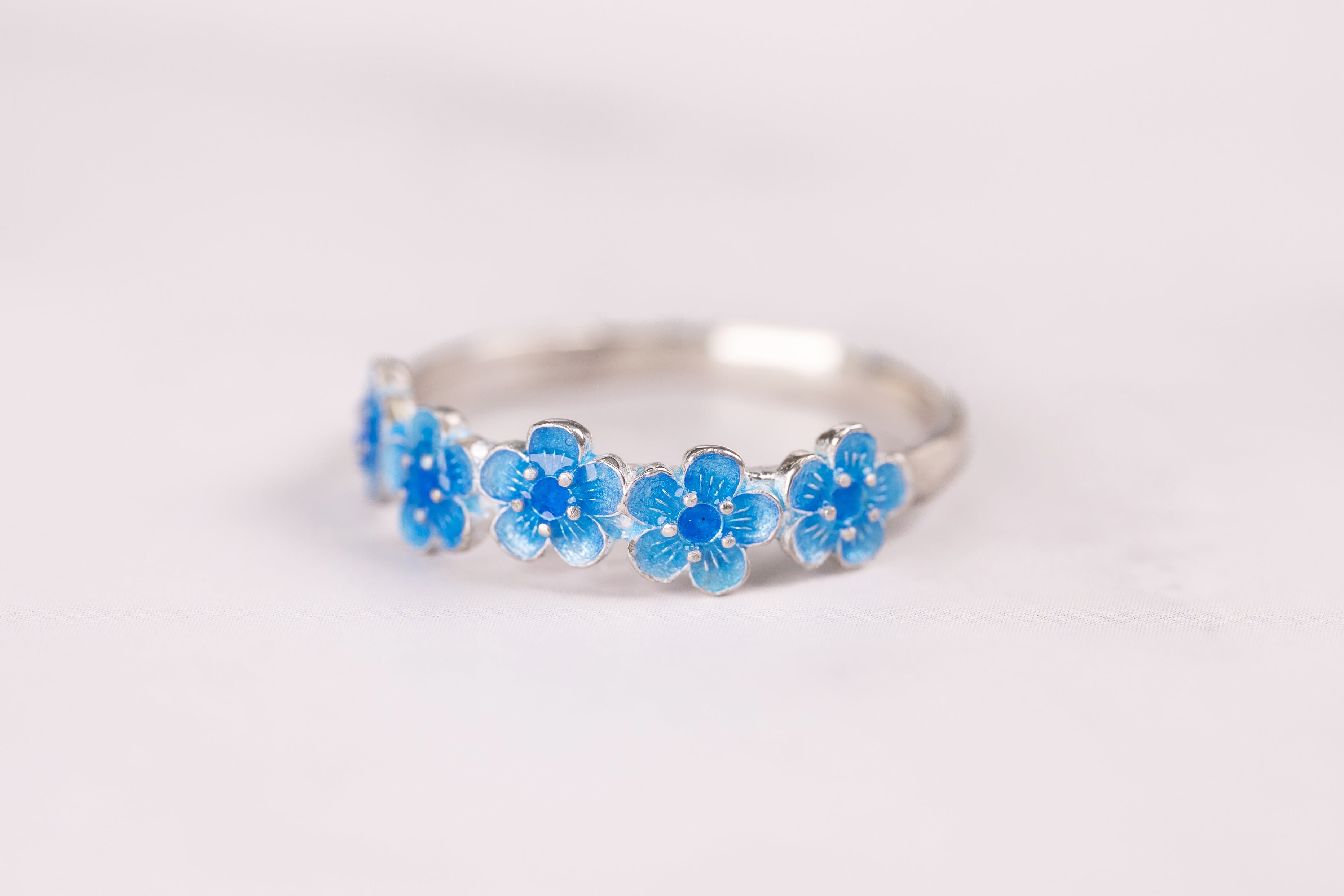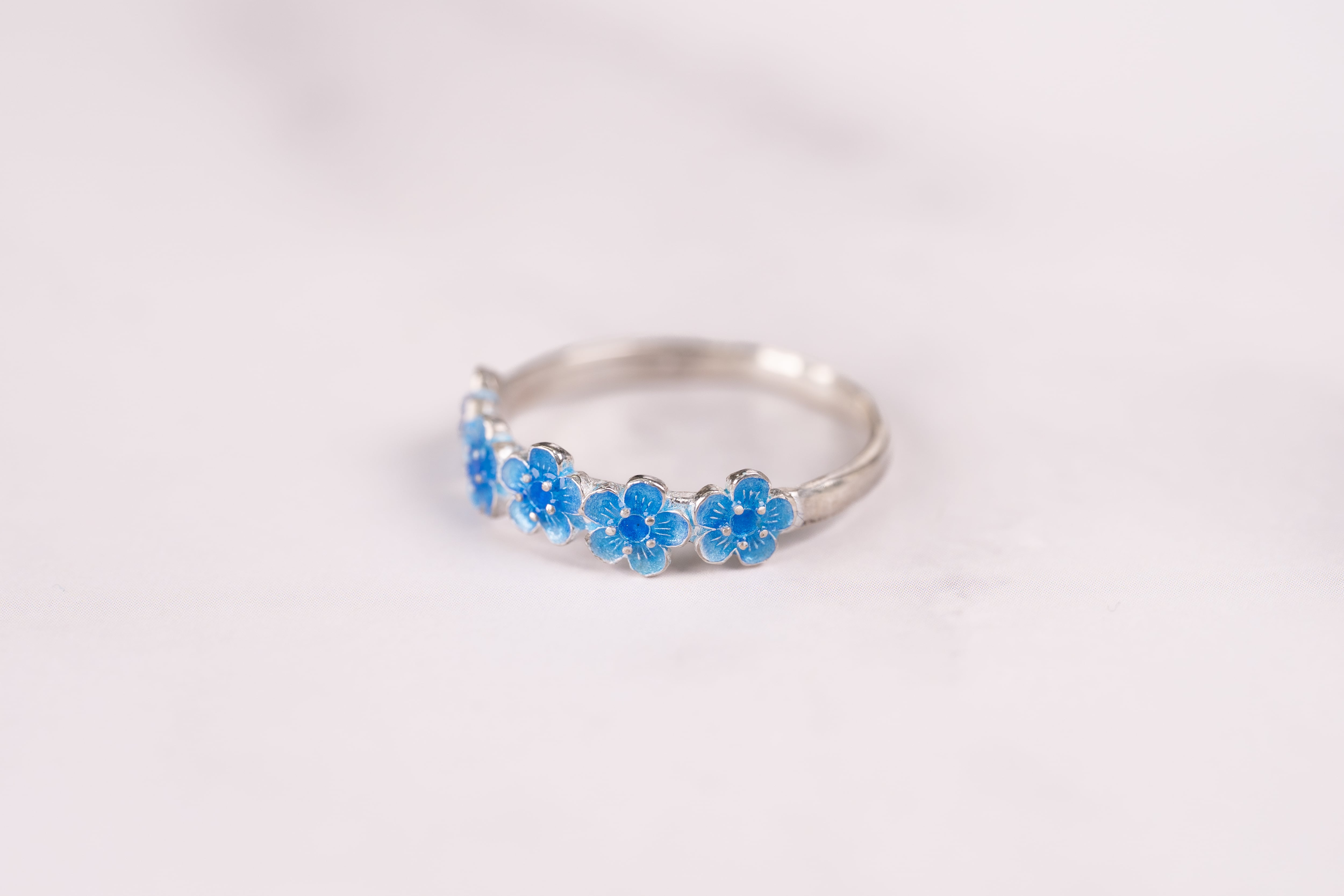 AIGISのエマーユリング【hana・半周】は、シルバー(SV950)に七宝焼きの技法で彩りを施した職人手作りのリングです。さりげなく指先を彩る、日常使いしやすいデザインです。